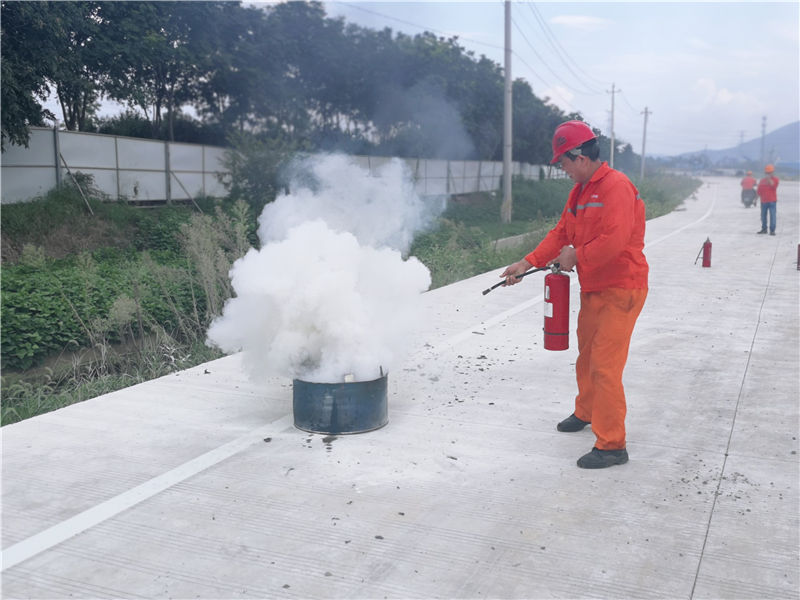 此次演習得到了各車間的大力支持,按消防演習方案,8月22日下午14:30消防現(xiàn)場培訓(演習)正式開始,演習總指揮下達演習開始指令,各組人員迅速到位。巡視人員在金輔一路北面工地上發(fā)現(xiàn)火情,立即使用對講機向安全部報告,安全員接到火情,迅速致電公司消防安全領導小組,啟動消防預案,滅火行動小組快速攜帶滅火器奔赴現(xiàn)場滅火,同時組織現(xiàn)場模擬施工人員緊急撤離現(xiàn)場,直至所有人員疏散完畢。