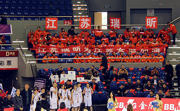上半場雙方隊員都竭盡所能,向對方的籃筐發起一輪又一輪的進攻,下半場八一南昌女籃隊一次次投籃的命中將全場比賽的氣氛帶到了高潮。她們以閃電般的速度,準確的傳球,敏捷的閃躲,奪得一次次投籃的機會,全場的歡呼聲如一波接著一波久而不息。在比賽最后時刻,江蘇女籃不得不采用犯規戰術,但是大勢已去,比賽進入最后階段,全隊絲毫不敢放松,帶球突破,擋拆結合,不給對方留一絲翻盤的機會。比賽中,球場上的每個動作都牽動著我們江蘇瑞昕啦啦隊的心,我們為進球吶喊,為突破助威,五秒……四秒……三秒……二秒……“鐺”哨音吹響,全場比賽結束,兩隊的比分定格在80:102,江蘇牛首山隊全面淪陷,八一南昌隊挺進決賽!